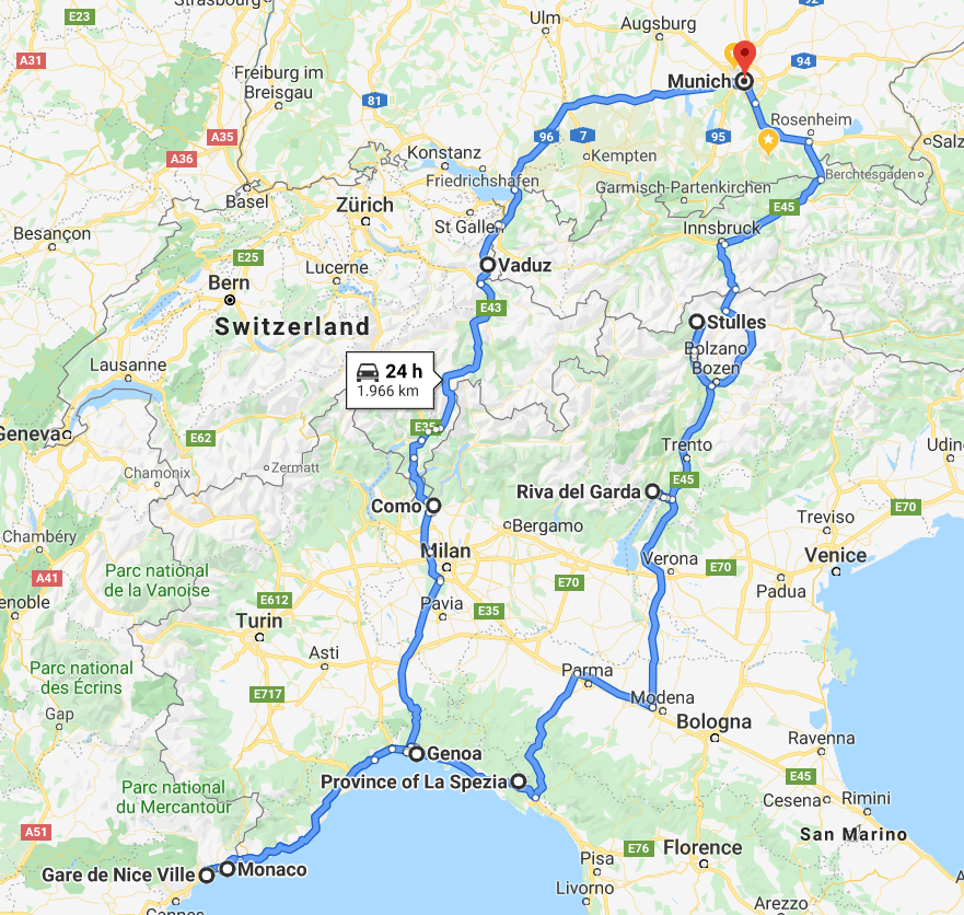 Живя в Германии у нас была возможность посетить очень много Европейских стран. Мы уже были много раз в Италии и в Австрии, поэтому в этом туре решили захватить те страны, в которые мы так и не попали. Целью поездки было доехать до Монако и так же посмотреть Ниццу и Лихтенштейн. В тур мы собрались не одни, а с нашими друзьями из Украины. Они прилетели к нам в Мюнхен, и на следующий же день мы отправились на арендованной машине в поездку.