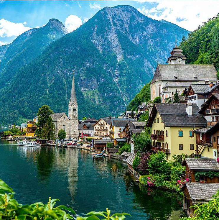 Город Hallstatt. Всем известный красивейший городок на берегу одноименного озера. Я бы назвала его скорее деревушкой, так как он очень крохотный. Фотографии здесь получаются шикарные, но туристов очень много. Найти место в ресторанчике очень сложно и приходится ждать очереди для фото.